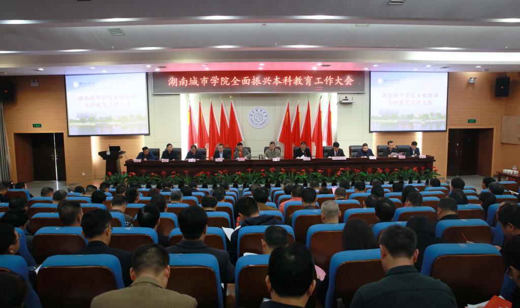 (本网讯)为进一步落实全国教育大会与新时代全国高等学校本科教育工作会议精神,全面提高学校本科教育水平和人才培养能力,研究部署本科人才培养工作,2019年4月12日,jdb电子全面振兴本科教育工作大会在图书馆报告厅举行。在家的校领导,副处级以上干部、督导团团长、教学科研办主任、系(室、中心)主任,教务处、教学质量监控与评估中心全体成员,全体辅导员、二级学院教师及学生代表共270余人参加会议。会议由学校党委副书记汤放华主持。