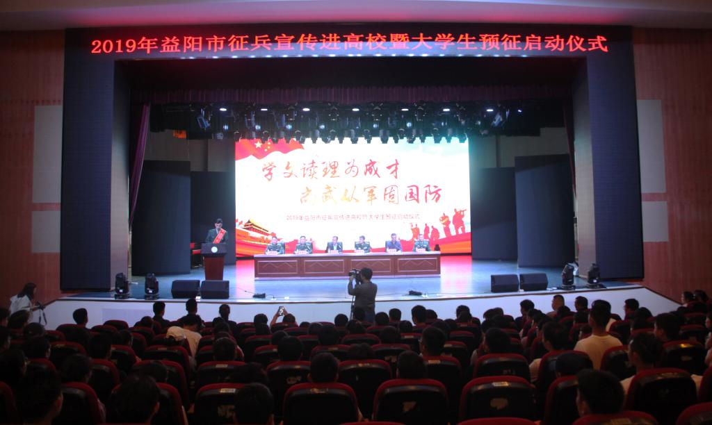 (本网讯)2019年4月19日下午,2019年益阳市征兵宣传进高校暨大学生预征启动仪式在jdb电子音乐厅隆重举行。益阳军分区司令员席尚平,市征兵办公室主任、军分区动员处处长肖尊华,资阳区人武部部长裴庆华,赫山区人武部部长张永发,校长李建奇、副校长雷存喜以及益阳四所高校400余名师生代表参加。仪式由雷存喜主持。