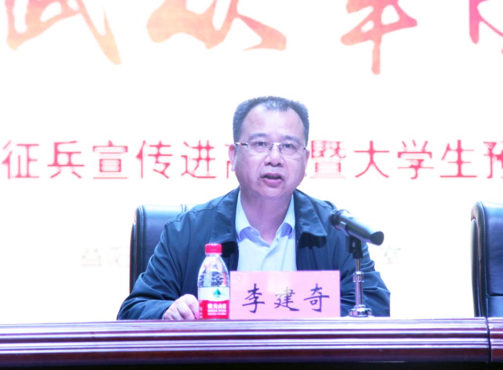 李建奇代表学校致辞。他指出,建设一支听党指挥、能打胜仗、作风优良的新型人民军队,迫切需要有知识、有文化、有担当的优秀大学生到部队建功立业。近年来,学校党委高度重视大学生征兵工作,坚持拧紧学生理想信念的“总开关”,注重红色基因传承,发挥先进典型示范,细化征兵服务。“文能提笔安天下,武能上马定乾坤”。他鼓励jdb电子学子主动投身到祖国最需要的地方去,用实际行动去实践家国情怀!