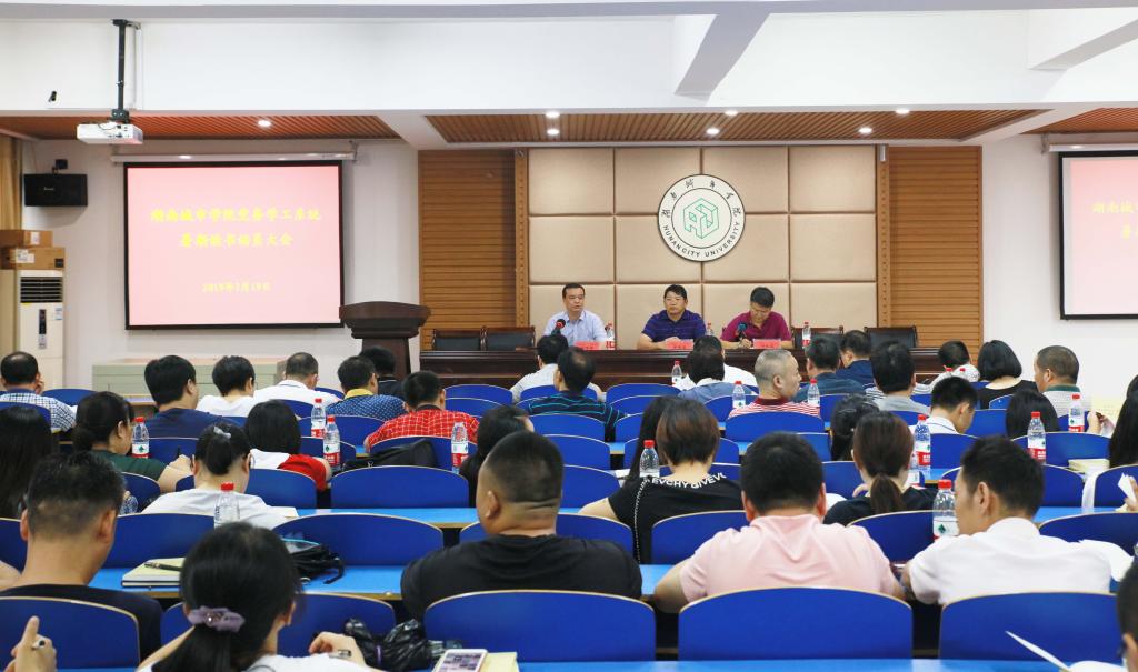 (本网讯)2019年7月19日,jdb电子在二办公楼310召开了党务学工系统暑期读书动员大会。党委书记罗成翼、党委副书记汤放华、副校长雷存喜,党委委员李斌、袁志成出席会议,二级学院党委书记、副书记、辅导员,党政办、组织部、宣传部、学工部、招生就业处、团委全体人员以及教务处、科研处、马克思主义学院部分人员参加会议。会议由汤放华主持。