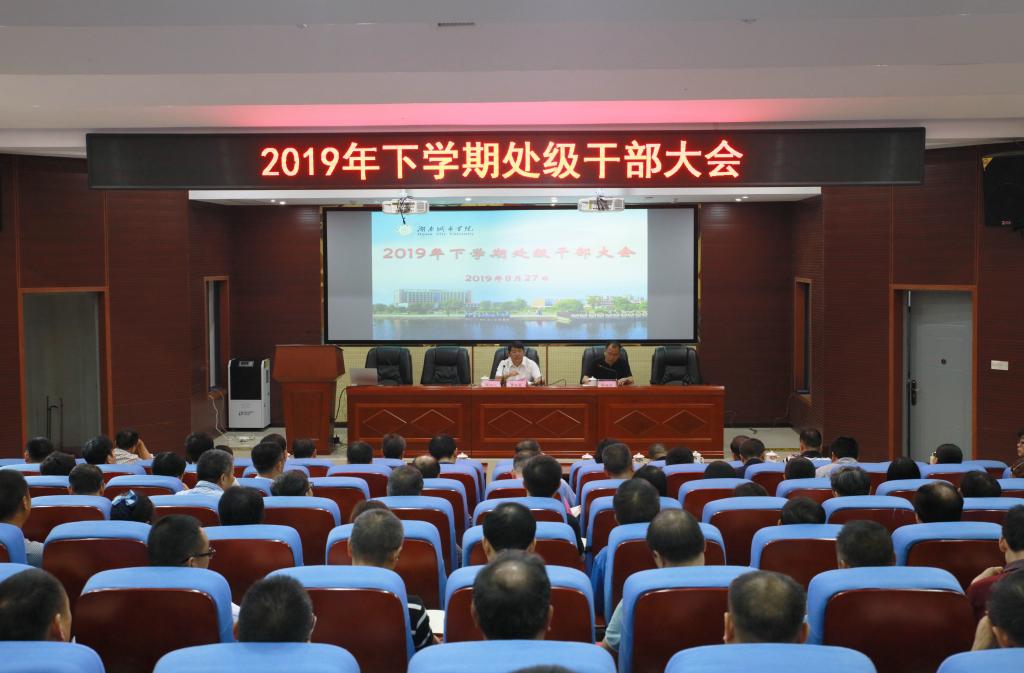 (本网讯)2019年8月27日,jdb电子在建筑规划楼121报告厅召开了2019年下学期处级干部大会。全体校领导和副处级以上干部参加了会议。会议由党委书记罗成翼主持。