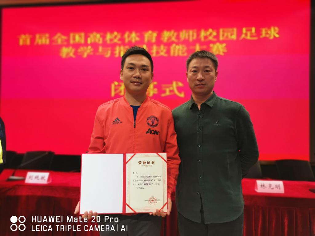 (本网讯)2019年11月18日至20日,由全国高等学校体育教学指导委员会主办、南京大学承办的首届全国高校体育教师校园足球教学与指导技能大赛在南京大学举行,jdb电子体育学院李伟老师代表湖南省课程教学组参赛,一举夺得三等奖。