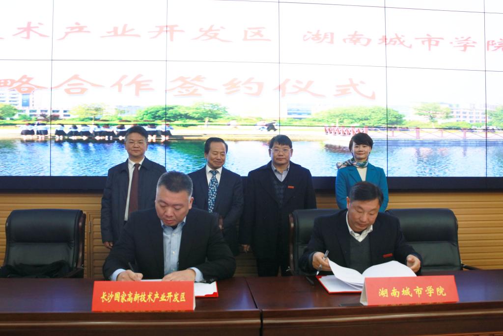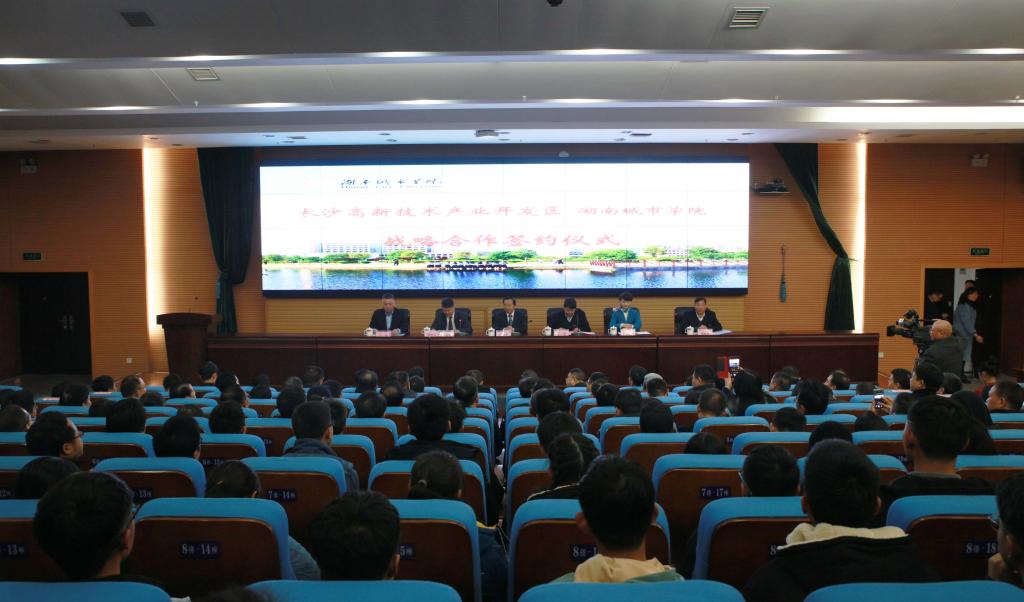 (本网讯)2019年11月30日,jdb电子游戏官方网站与长沙国家高新技术产业开发区校地合作协议签订仪式在图书馆报告厅举行。长沙国家高新技术产业开发区党工委书记周庆年,党工委委员、管委会副主任崔晓、帅军,校领导罗成翼、汤放华、姚春梅、郑卫民、谭献良、李斌出席签约仪式。仪式由党委副书记汤放华主持。