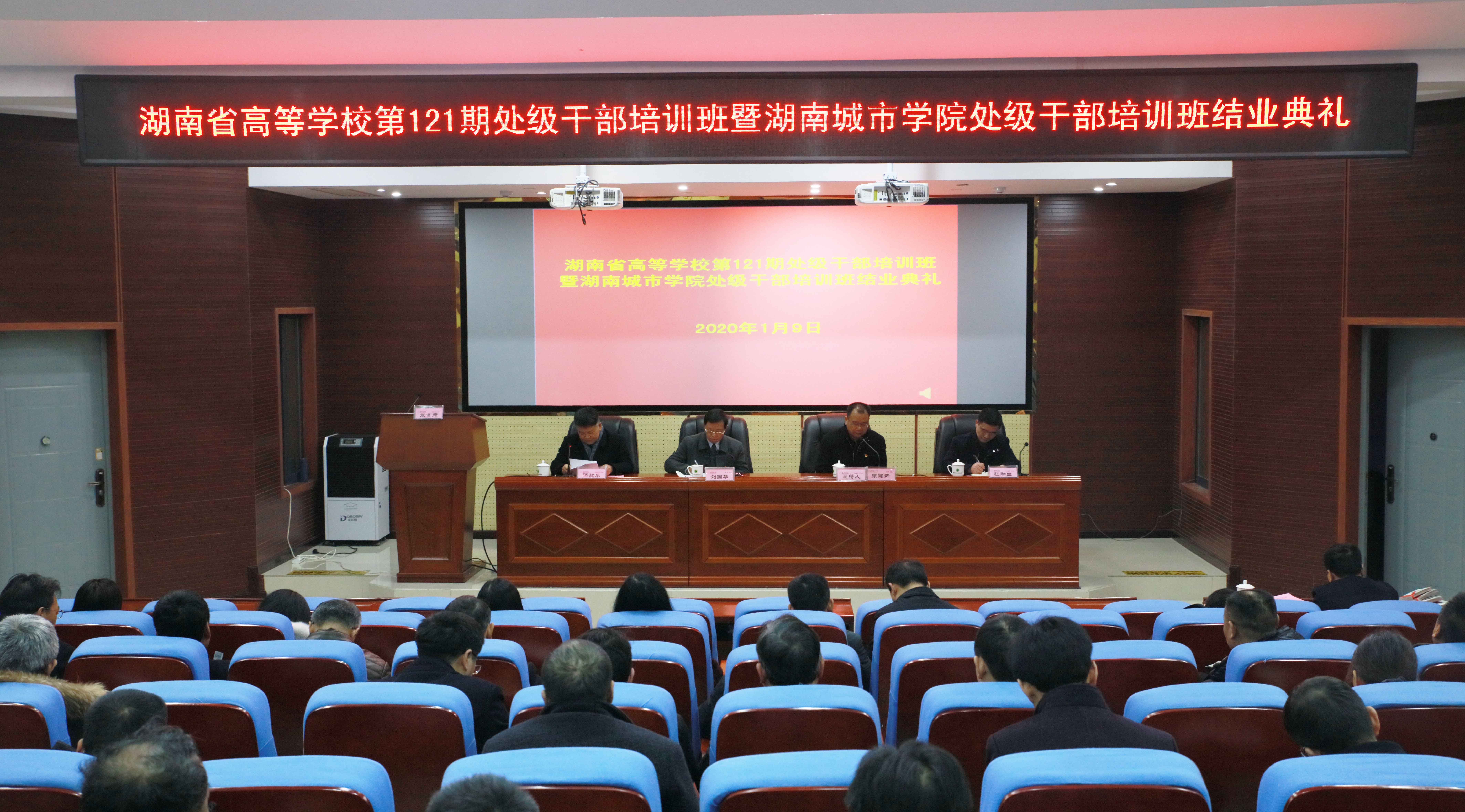 (本网讯)2019年1月9日,湖南省高等学校第121期处级干部培训班暨jdb电子游戏官方网站处级干部培训班结业典礼在jdb电子图书馆报告厅举行。湖南省高校干部培训中心主任、书记,省委教育工委党校常务副校长刘国华,省高校干部培训中心副主任张和生,党委副书记汤放华,党委委员、组织部长袁志成出席。结业典礼由党委副书记、校长李建奇主持。