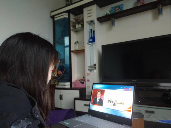 学生在家观看此次直播。