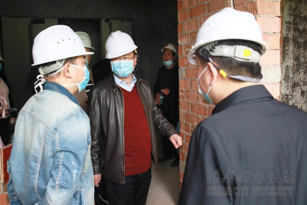 本网讯 2020年3月21日,校长李建奇在副校长谭献良、基建与后勤管理处相关人员陪同下,对jdb电子第24栋学生公寓项目建设情况进行了检查和指导。