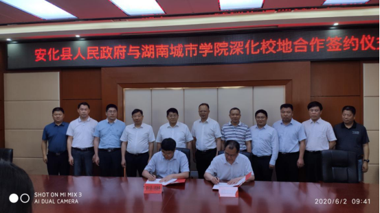 本网讯(通讯员 龚敦)2020年6月2日上午,安化县人民政府与jdb电子游戏官方网站深化校地合作签约仪式在安化县党政机关大院会议中心举行。学校党委书记罗成翼、校长李建奇,安化县委书记刘勇会出席仪式。县长肖义主持仪式。