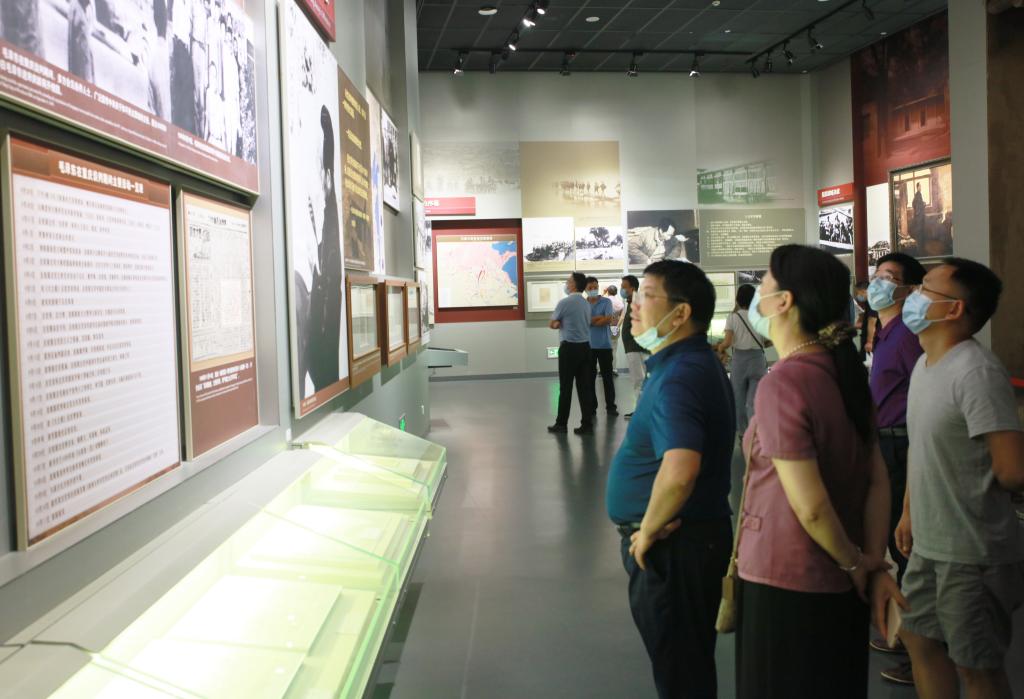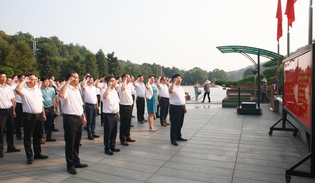 全体人员来到韶山后,首先参观了毛主席纪念馆。在讲解员的引导和解说下,全体党员干部全面了解了毛泽东同志从求学、参加革命到带领全国人民建立新中国伟大而光辉的一生。一件件史实、一个个故事、一张张图片……让大家重温了那段交织着血与火的历史,感受了“为有牺牲多壮志,敢教日月换新天”的韶山精神,心灵一次次受到洗礼。参观结束后,全体人员来到毛泽东铜像广场,集体向毛泽东同志铜像敬献花篮,庄严地向毛泽东同志铜像鞠躬,深切缅怀一代伟人。在党委书记罗成翼领誓下,全体党员干部面对党旗,一起重温了入党誓词。