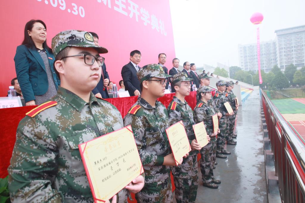 学校对新生奖学金获得者进行表彰。