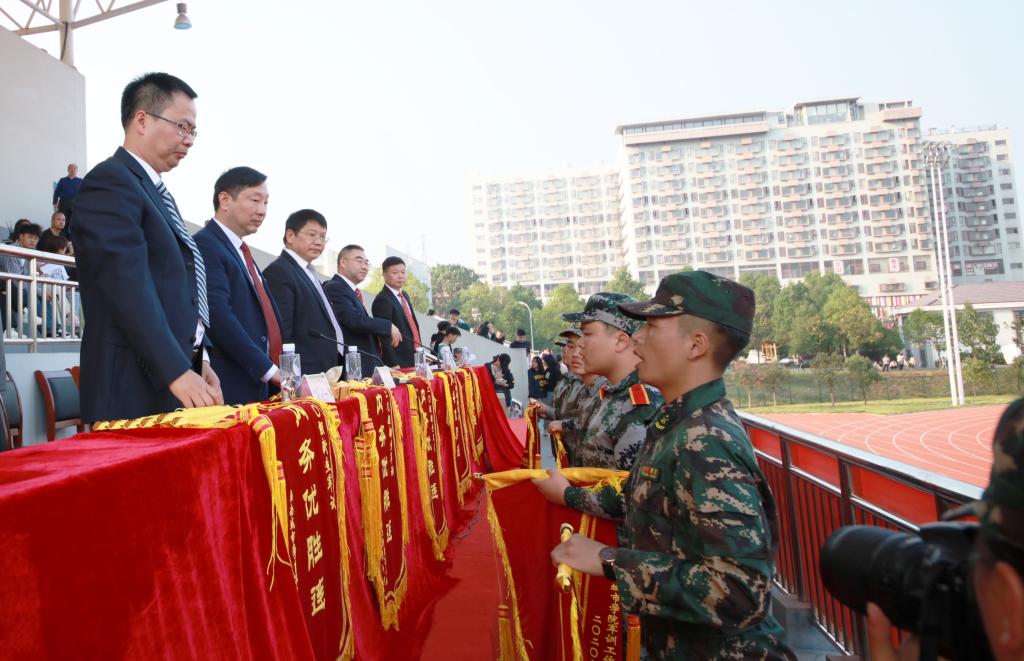 李斌宣读了jdb电子2020级新生军训表彰决定:市政与测绘工程学院2营、材料与化学工程学院8营等5个营获得内务优胜营称号,管理学院4营等15个连获得内务优胜连称号,土木工程学院3营等5个营获得训练先进营称号,建筑与城市规划学院“规心一建”方阵等15个方阵获得优秀方阵称号,钟正武等8人被评为优秀辅导员,毛清仪等28人被评为优秀教官,高玉海等196人被评为军训标兵,土木工程学院的《军体拳》获得表演节目中的第一名。与会校领导为受表彰的集体和个人颁发了锦旗。