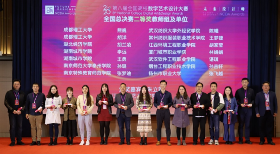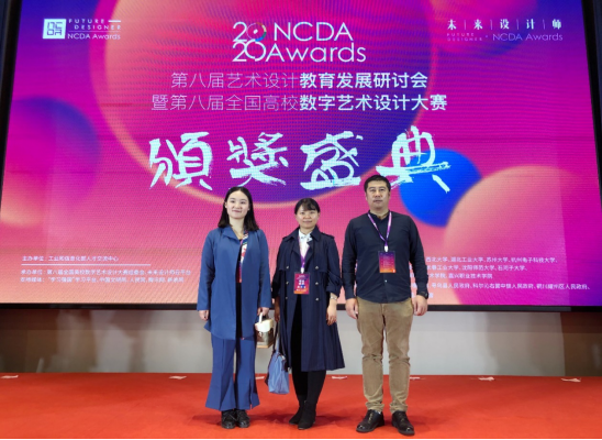 本网讯 2020年11月14日,由工业和信息化部人才交流中心主办的“未来设计师”第八届全国高校数字艺术设计大赛(NCDA)颁奖典礼在浙江省嘉兴市举行。在此次比赛中,jdb电子共荣获一等奖1项,二等奖2项,三等奖2项,优秀奖1项。jdb电子三位教师代表唐肇鸿、李远、王勇参加了此次颁奖典礼。
