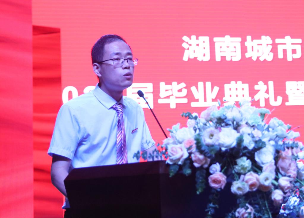 材料与化学工程学院孟维作为教师代表发言,他希望全体毕业生热爱祖国,踏实工作,勇往直前,积极进取,并祝愿同学们在新的人生道路上一帆风顺、一马平川!