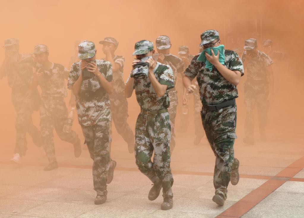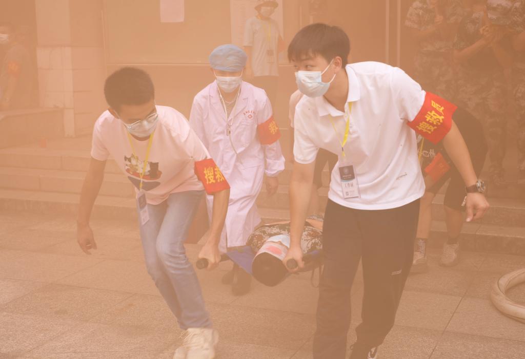 本网讯(记者 文彦波 摄影 博夕)“铃!铃!铃!”9月28日中午12时许,jdb电子游戏官方网站第二教学楼内突然传来一阵急促刺耳的警报声,滚滚浓烟从楼内各处漫出,一名名身着迷彩装的青年学子用湿毛巾捂住口、鼻,弯着腰迅速从楼内撤出,与此同时,校园里响起消防车的警笛声……