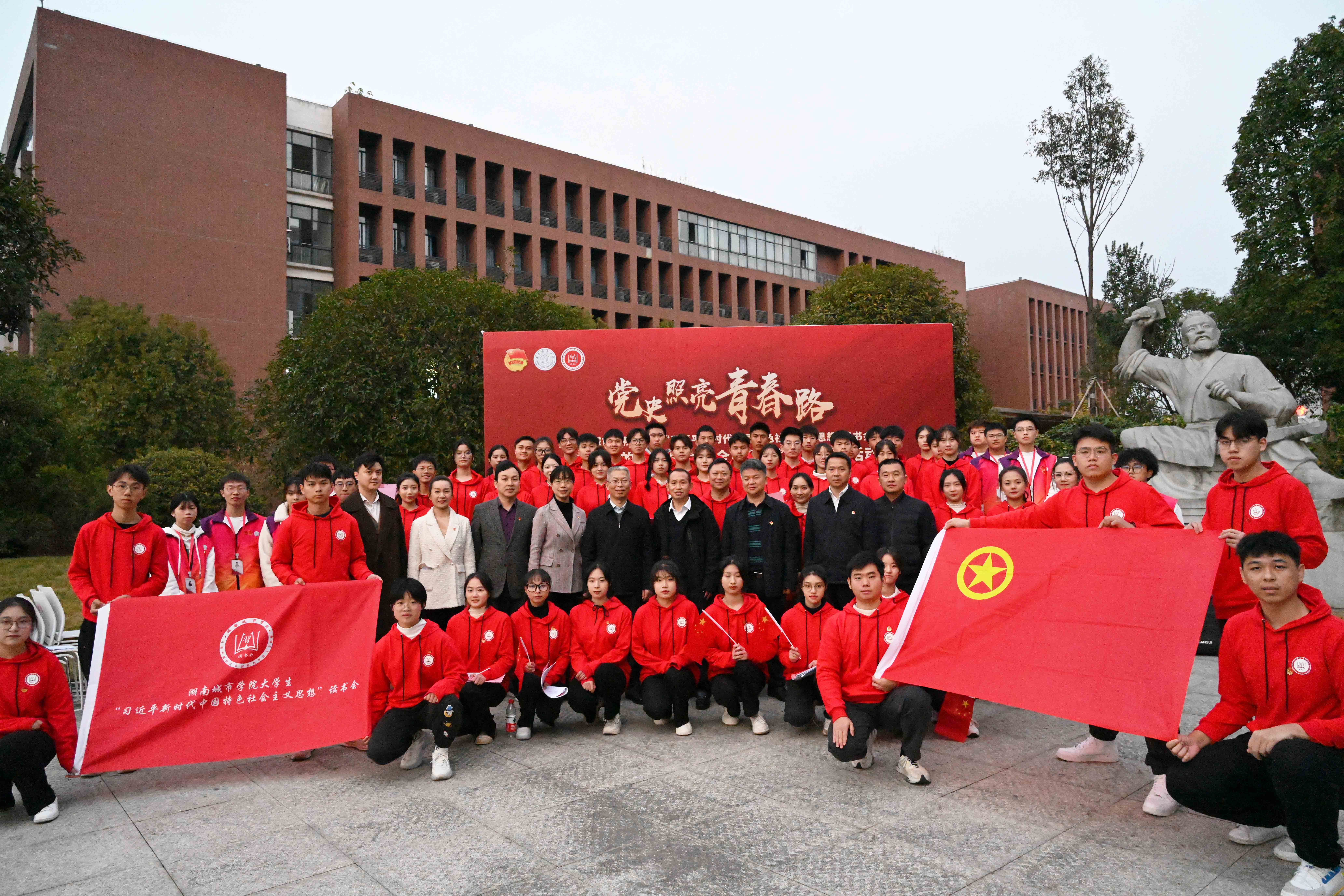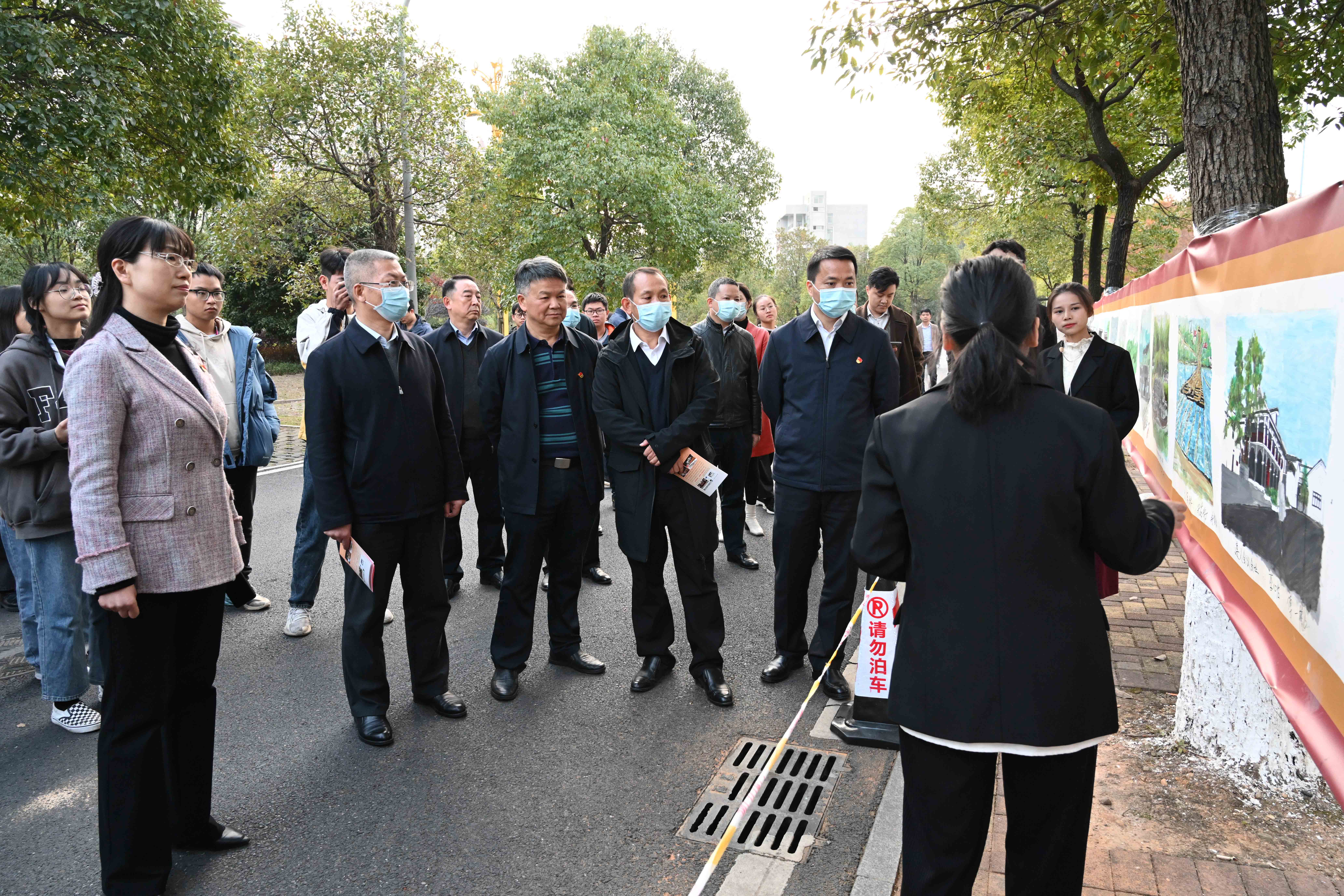 随后,指导组来到鲁班文化广场,观看了jdb电子“习近平新时代中国特色社会主义思想读书会” 开展的“学习十九届六中全会精神”专题读书活动。指导教师导学、学生自主讨论发言、击鼓传花知识问答、师生合唱红色歌曲……新颖的“沉浸式” 教学方式吸引了指导组一行人的目光,他们不时询问读书会的情况,希望学校着力打造好读书会这个品牌,使其成为青年学子思想交流的重要阵地,引领广大青年知史爱党、知史爱国。