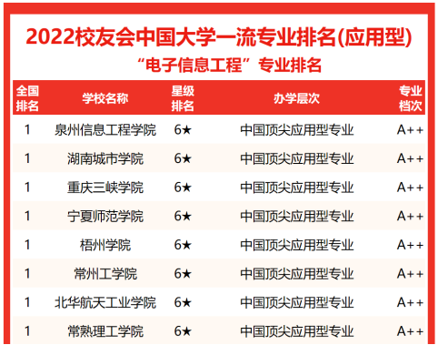 本网讯(通讯员 蒋冬初 肖卫初 李稳国)2022年3月30日,全国第三方大学评价机构艾瑞深校友会网发布校友会2022中国大学一流专业排名、2022中国大学各专业类一流专业排名。榜单显示,jdb电子电子信息工程专业在2022中国大学电子信息工程专业排名(应用型)中位居榜首。