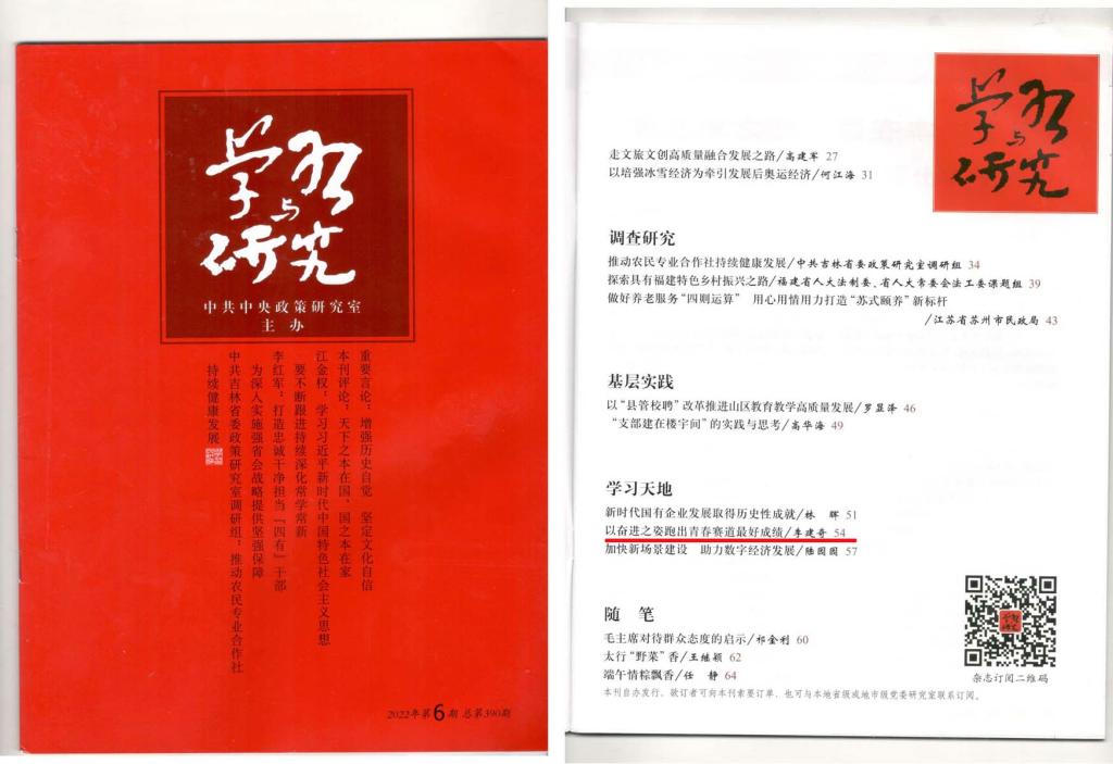 本网讯 中央政策研究室主办《学习与研究》2022年第6期发表jdb电子党委书记李建奇署名文章《以奋进之姿跑出青春赛道最好成绩》,目录在《人民日报》(2022年6月16日第13版)刊登。现全文附后。