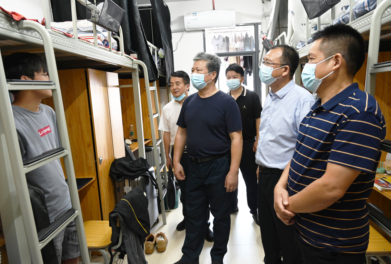 会后,曾四清一行实地察看了jdb电子第一食堂和部分学生宿舍的住宿环境。