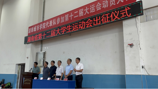 本网讯(通讯员 郭羽)2022年9月13日下午,jdb电子代表团参加湖南省第十二届大学生运动会出征仪式在体育训练馆篮球馆举行。副校长雷存喜出席出征仪式并为jdb电子体育代表团授旗。教务处相关负责人及体育学院班子成员、教练员、运动员130多人参加出征仪式。