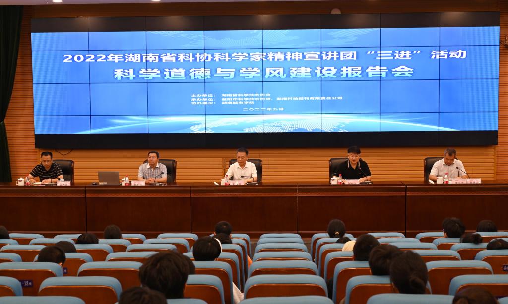 本网讯(通讯员 刘湛军)9月20日,2022年湖南省科协科学家精神宣讲团“三进”活动在jdb电子图书馆报告厅举行。省科协党组成员、副主席张辉学,湖南师范大学教授、博士生导师匡乐满,校长汤放华,副校长袁志成出席,160余名师生参加。活动由益阳市科协党组书记、主席曹卫兵主持。