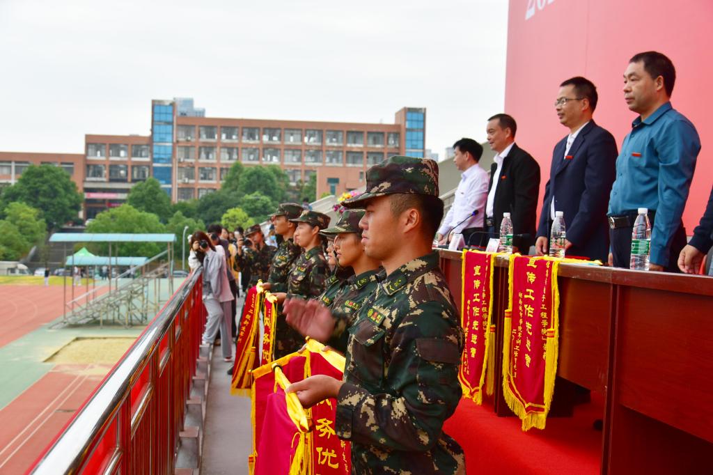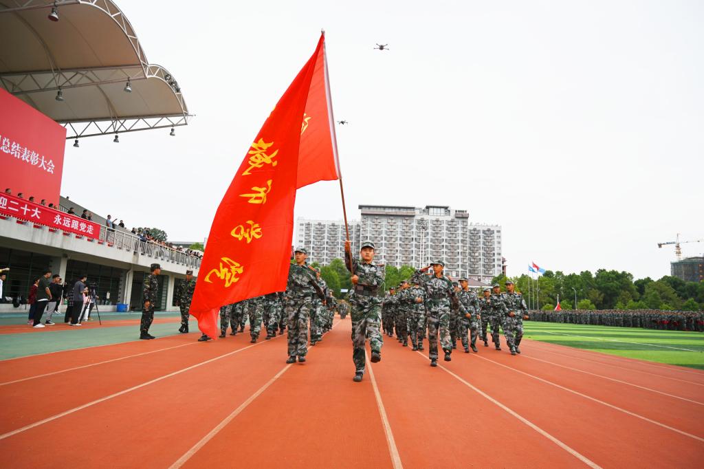 会上,学校武装部负责人作了军训总结报告,副校长袁志成宣读了2022级新生训练先进营、内务优胜营、宣传工作先进营、优秀分列式方阵、内务优胜连、优秀新生辅导员、优秀教官、军训标兵、优秀团体节目名单。与会领导为受表彰单位和个人代表颁奖。