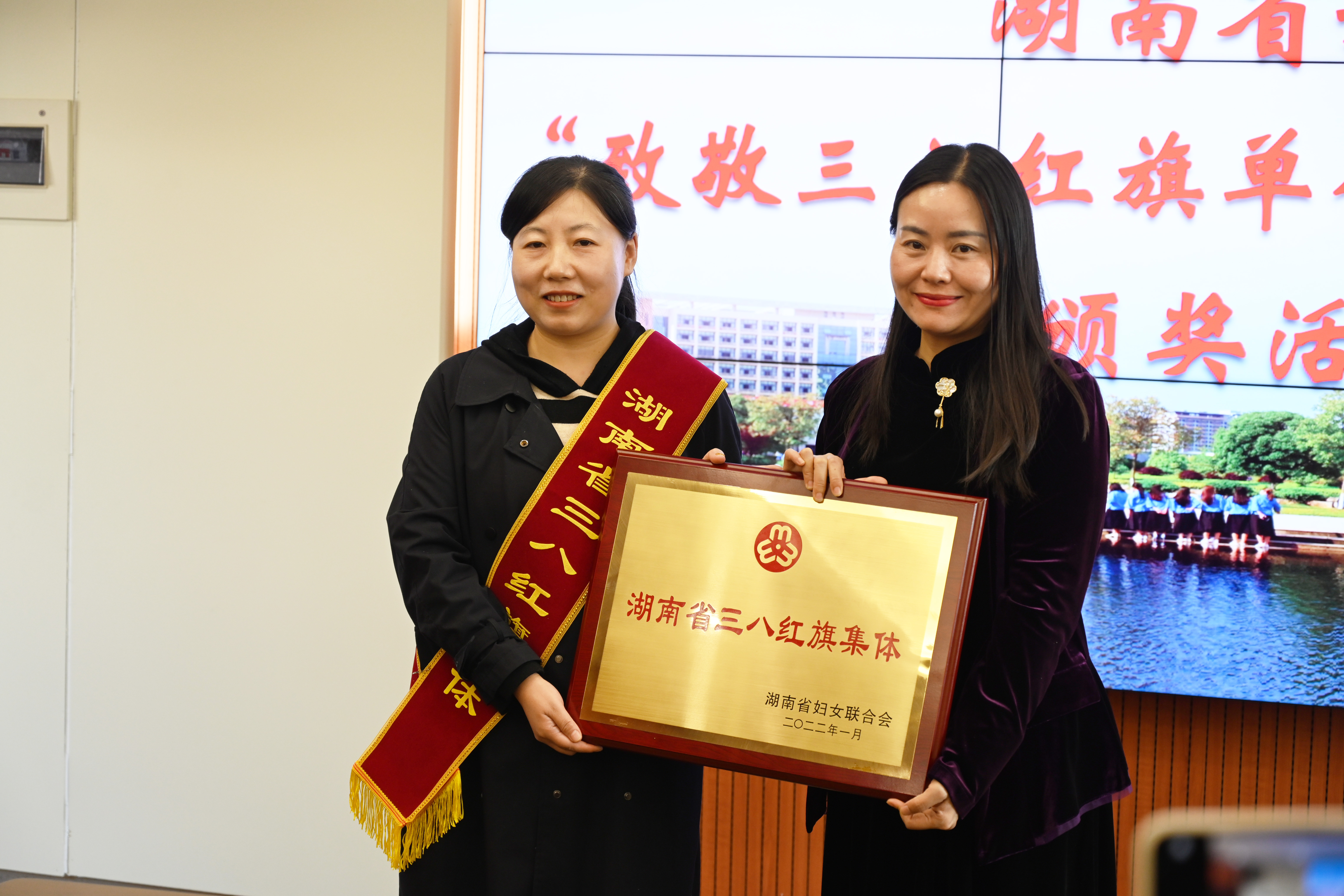 本网讯(记者/文彦波 通讯员/王锋娟)11月2日下午,省妇联副主席周荣一行来到jdb电子游戏官方网站开展“致敬三八红旗手·送奖到基层”活动,为荣获湖南省“三八红旗集体”荣誉的马克思主义基本原理概论教研室颁奖。学校党委副书记何旭娟,校工会、马克思主义学院等单位相关负责人出席授奖仪式。