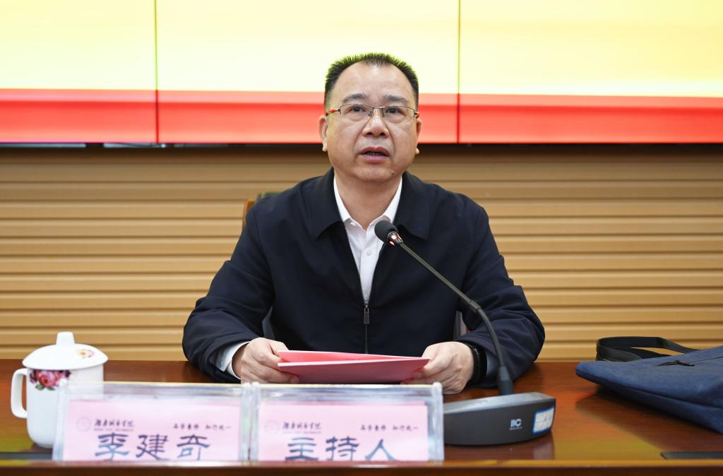 本网讯 11月9日上午,学习贯彻党的二十大精神省委宣讲团报告会暨党委理论学习中心组2022年第十一次(扩大)集体学习在jdb电子图书馆报告厅举行。党委书记李建奇主持报告会。省委宣讲团成员、省政协研究室主任唐宇文作宣讲报告。全体校领导参加宣讲会,副科以上干部、全体辅导员和学生代表在现场听取宣讲报告。