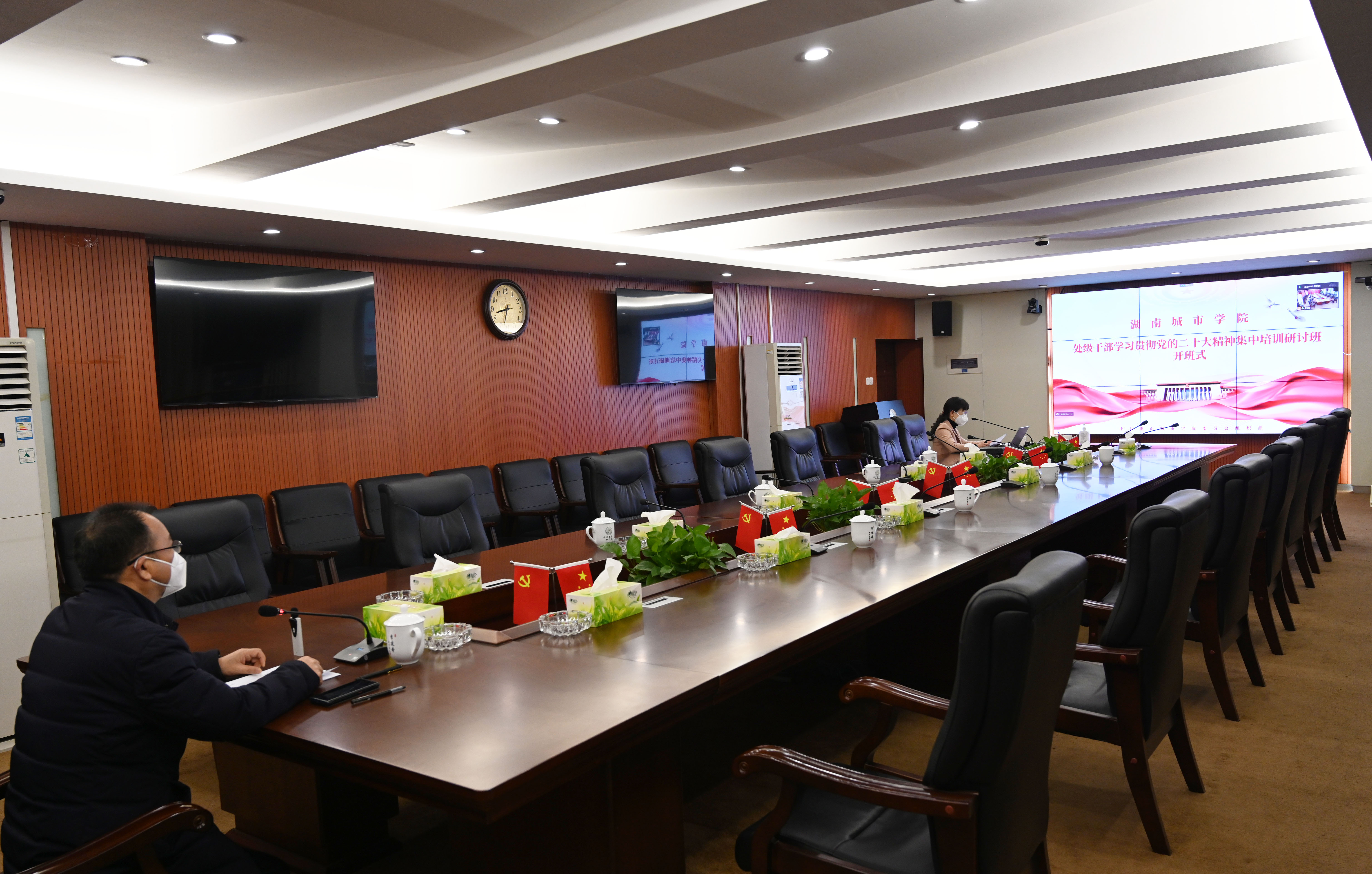 本网讯(通讯员 冷红)为深入学习宣传贯彻党的二十大精神,切实推动党的二十大精神入脑入心、见行见效,2022年12月27日,jdb电子处级干部学习贯彻党的二十大精神培训班开班仪式举行,开班仪式采用线上线下、主会场分会场相结合的方式进行。党委书记李建奇作动员讲话,校长汤放华作专题报告,全体校领导、全体处级干部参加。开班仪式由学校党委副书记何旭娟主持。