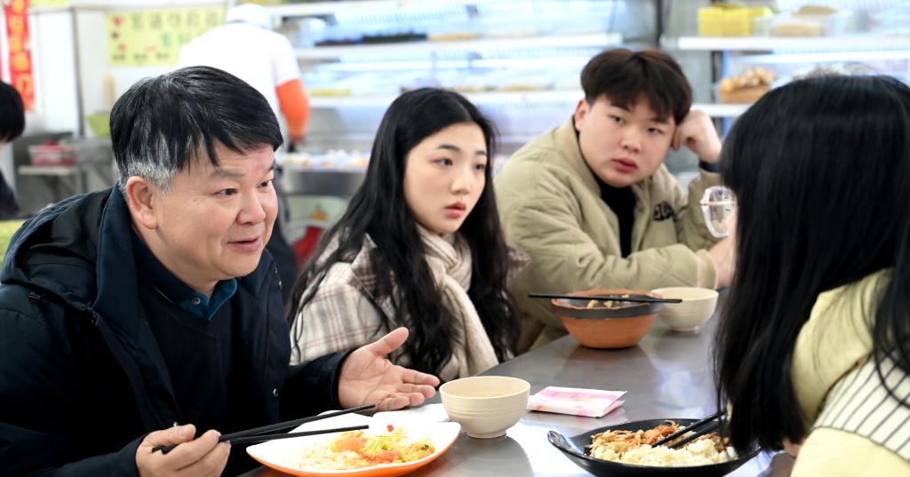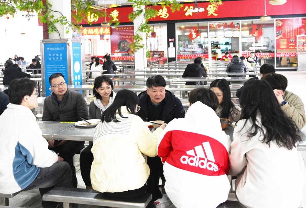本网讯(记者 文彦波)“希望你们努力学好专业文化知识,奋发有为,努力成为担当民族复兴大任的时代新人!”2月14日中午,jdb电子游戏官方网站第三食堂内气氛热烈,温情满满,学校党委书记汤放华与7位学子共进午餐,面对面谈心交流,现场一片欢声笑语。