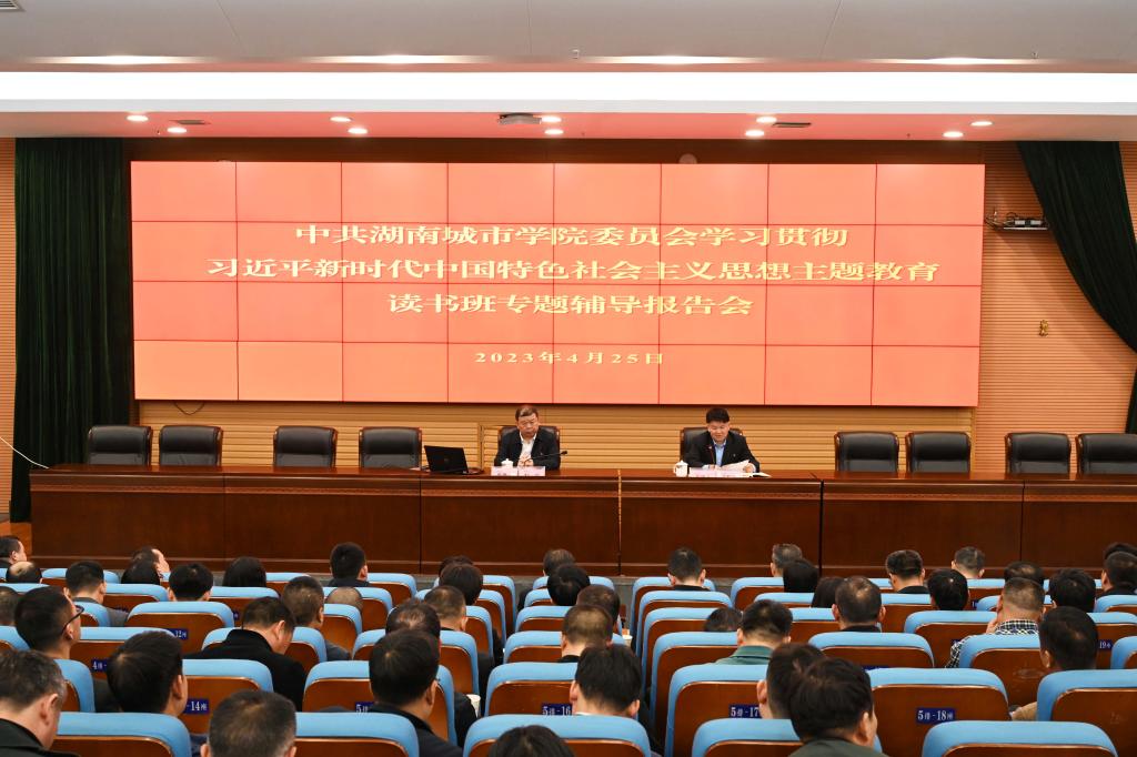 本网讯(记者 文彦波)4月25日晚,jdb电子游戏官方网站学习贯彻习近平新时代中国特色社会主义思想主题教育读书班在图书馆报告厅开班。湖南工业大学党委书记刘望应邀作专题辅导报告。学校党委书记汤放华主持报告会并作动员讲话。学校副处级以上领导干部参加读书班。