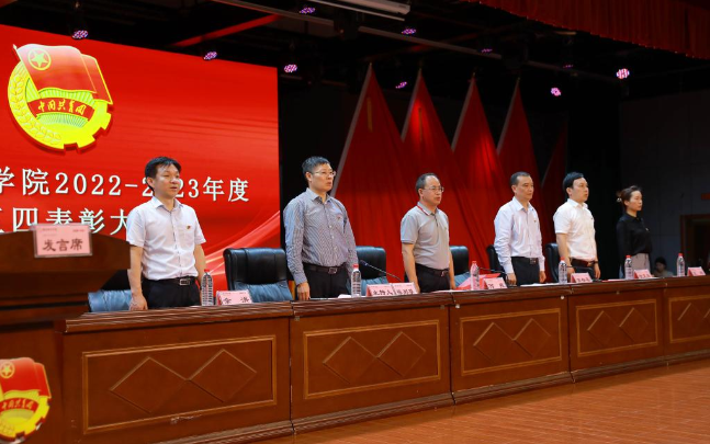 在激昂的国歌声中,表彰大会拉开序幕。副校长雷存喜宣读了《关于表彰jdb电子游戏官方网站第二届“活力团支部”和“城院之星”的决定》《关于表彰jdb电子游戏官方网站2022年度共青团工作先进集体和优秀个人的决定》。据悉,此次学校共评出“五四红旗团总支”4个,“优秀团支部”86个,“活力团支部”14个,“城院之星”18人,“优秀教师团干部”4人,“优秀共青团干部”273人,“优秀共青团员”376人。