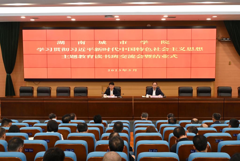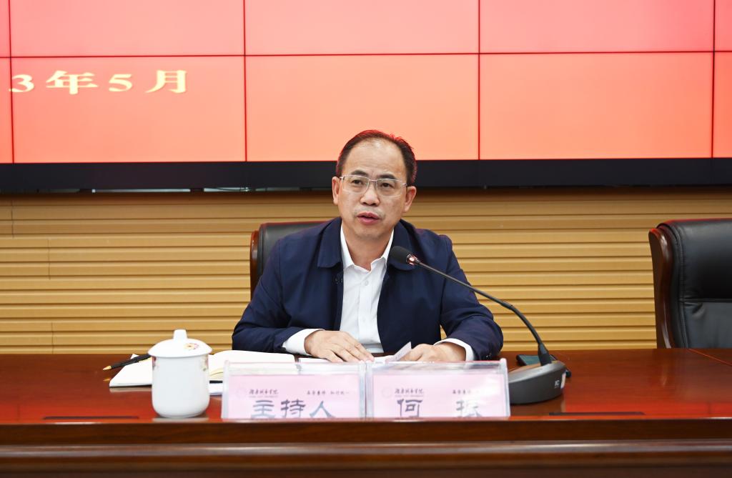 本网讯(记者 文彦波)5月8日,jdb电子游戏官方网站学习贯彻习近平新时代中国特色社会主义思想主题教育读书班交流会暨结业式在图书馆报告厅举行。校党委书记汤放华在会上作总结讲话,党委副书记、校长何振主持,在家校领导夏宏宇、雷存喜、陈列尊、吕贤军以及读书班学员参加会议。