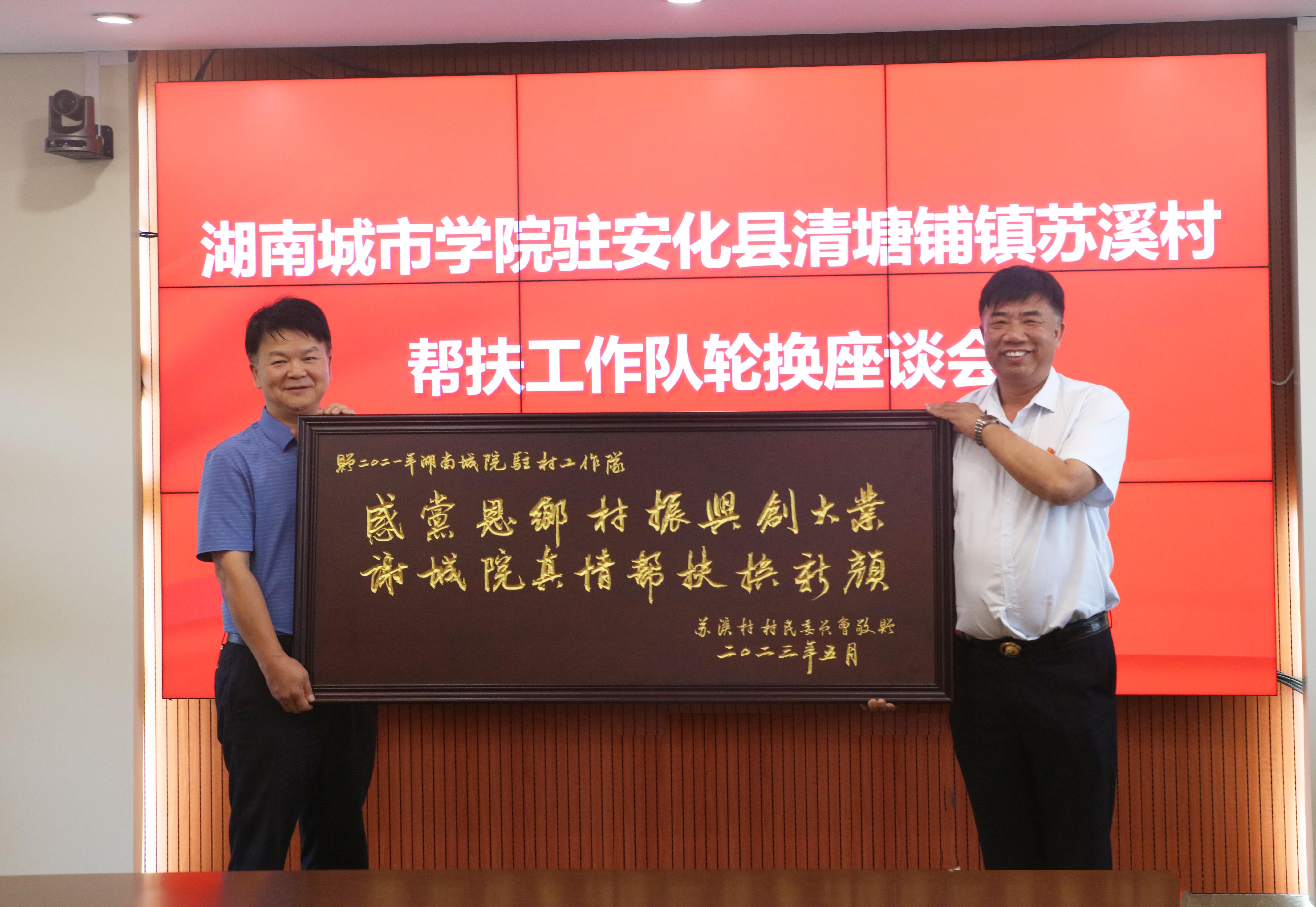 清塘铺镇副镇长肖佳麒、苏溪村支部书记邹文辉先后发言,表达了感谢、感恩和送别之情。他们表示,首批帮扶工作队在两年的帮扶工作中不计得失、不遗余力、不辞辛苦、不负众望,在推进乡村振兴中彰显新担当,“晴空万里”工作队品牌深入人心,给苏溪村的发展打下了坚实的基础。镇村两级也将全力配合学校第二批乡村振兴帮扶工作队开展工作。