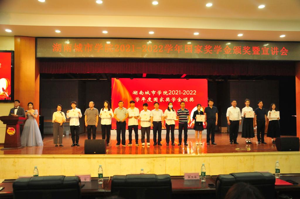 仪式上,学生工作处副处长匡艳群宣读了2021-2022学年度国家奖学金获得者名单,学生工作处处长余洪从国家和学校两个层面介绍了资助政策。随后,优秀学生代表进行了经验分享。