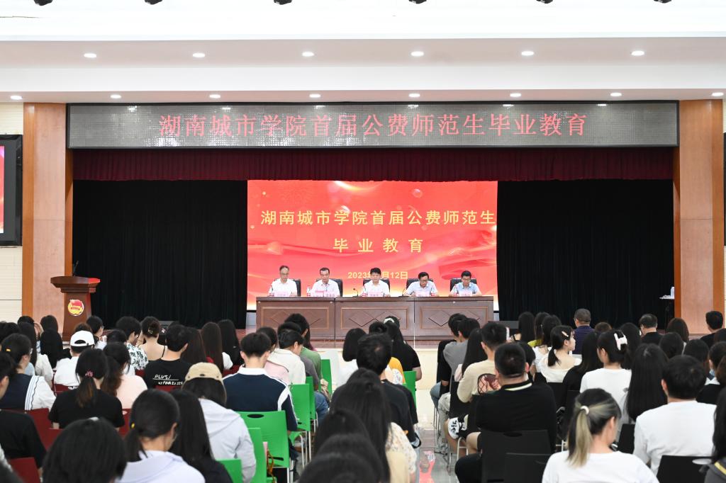 本网讯(供稿:教务处)6月12日,jdb电子游戏官方网站首届公费师范生毕业教育主题活动在学校学生活动中心举行。益阳市人民政府副厅级干部喻国良、益阳市教育局相关领导,校党委书记汤放华、副校长雷存喜出席,相关二级学院党委书记、教学副院长、教务处负责人以及2023届公费师范毕业生参加了此次活动。活动由雷存喜主持。