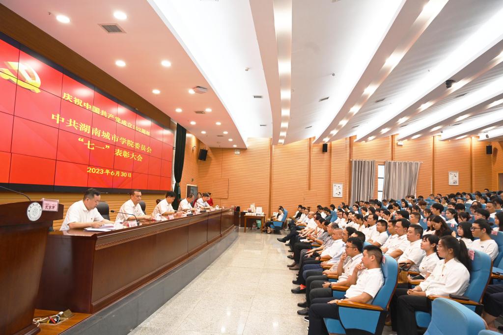汤放华代表学校党委向奋斗在学校各条战线上的全体党员,致以节日的问候和良好的祝愿!向受到表彰的优秀个人和先进基层党组织,致以衷心的祝贺!他在讲话中回顾了中国共产党风雨兼程的历史征程。他表示,今天召开表彰大会,就是要坚持社会主义办学方向,始终保持昂扬向上的精神状态,高标准地推进学校党的建设,把党的领导落实到把好办学方向、深化综合改革、促进高质量发展的全过程,为加快建成特色鲜明的高水平应用型大学提供坚强有力的政治、思想和组织保证。