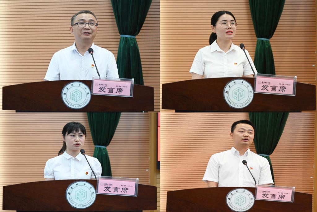 随后,信息与电子工程学院党委书记邓中日、材料与化学工程学院教工第二党支部书记刘赛文、机械与电气工程学院专职组织员段虹伶、土木工程学院教师阳逸鸣先后作典型发言,分享了个人工作经验,表示将持续加强习近平新时代中国特色社会主义思想的学习,进一步坚定理想信念,坚守立德树人初心,扛起教书育人使命,为学校高质量发展做出自己应有的贡献。