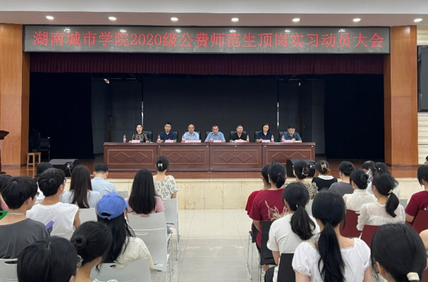 本网讯(通讯员 宋一恒 吴文倩)7月5日上午,jdb电子在学生活动中心召开2020级公费师范生顶岗实习动员大会。副校长雷存喜出席会议并讲话,教务处、教师教育学院、人文学院/大学英语教学部、理学院相关负责人、实习指导老师以及全体2020级公费师范生参加会议。会议由教务处负责人主持。