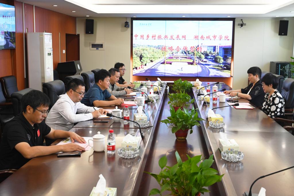 本网讯(供稿:科研处)10月17日,jdb电子游戏官方网站与中国乡村振兴发展网战略合作协议签约仪式在办公楼一会议室举行。中国乡村振兴发展网总编辑、中国社会科学院《中国乡村振兴发展报告》主编王冰,校党委书记汤放华,副校长袁志成,党委委员、组织部部长吕贤军出席签约仪式。