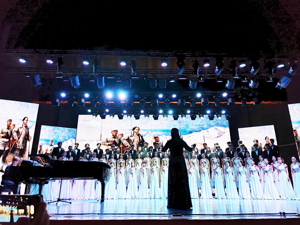 14支合唱队伍身着不同的服装,不约而同地选择了歌颂党、歌唱祖国的歌曲。《我爱你中国》《在灿烂的阳光下》《十送红军》《万疆》《追寻》《有我》等一首首耳熟能详的歌曲回荡在大厅内,激荡在观众的心里,让大家仿佛回到了一个个奋进的不同年代。