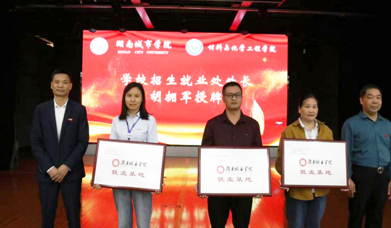 与会领导为邦弗特新材料股份有限公司、广州市瑞合新材料科技有限公司、奥士康科技股份有限公司三家企业颁发了“校企就业基地”牌匾。