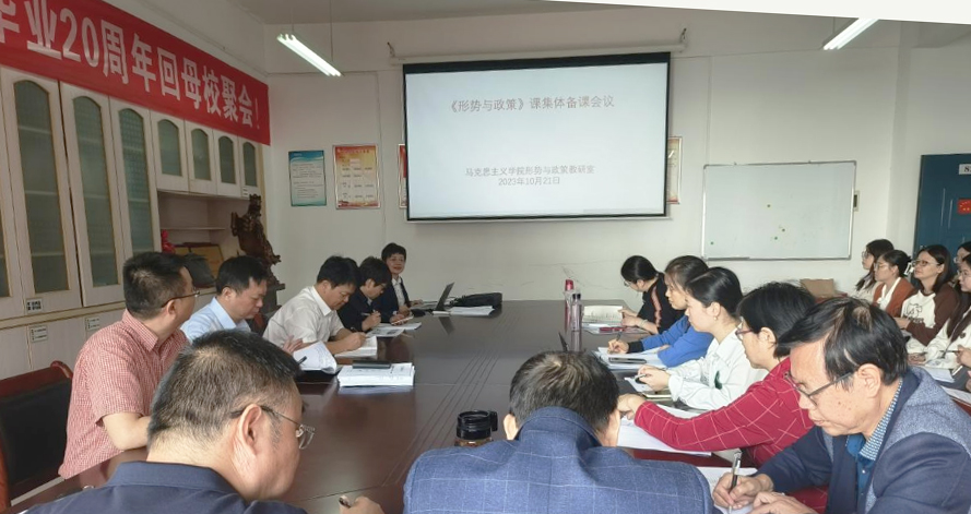 本网讯(通讯员 郭绚霞)10月21日上午9点,jdb电子马克思主义学院召开2023年秋季学期“形势与政策”课集体备课会。校党委书记汤放华出席备课会并作指导。马克思主义学院院领导及担任本学期“形势与政策”课程教学的老师参加。会议由形势与政策教研室主任郭绚霞主持。