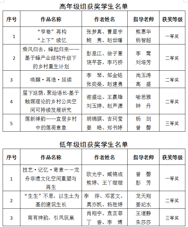 湖南省大学生可持续建筑设计竞赛是全省普通高校大学生学科竞赛活动,旨在进一步深化省内各高校建筑学等相关专业教学改革,提升人才培养质量,加强相关院系之间的学科交流,展现学生的综合实践能力和专业教育教学成果。本次竞赛以“重生计划--乡村绿色建筑”为主题,共有来自省内包括中南大学、湖南大学等在内的17所高校参加,通过各高校校赛选拔,共收到17所高校288组作品,其中高年级组178份,低年级组110份,经由省内建筑知名专家组成的评审委员会组织复赛,jdb电子建筑与城市规划学院共有8件作品入围,最终荣获高年级组一等奖1项,二等奖3项,三等奖1项;低年级组一等奖1项、二等奖1项、三等奖1项。同时,曾磬和熊惠华两位老师获评竞赛优秀指导老师。