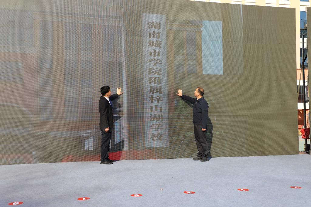 jdb电子党委书记汤放华、赫山区区委书记周卫星为jdb电子游戏官方网站附属梓山湖学校揭牌。