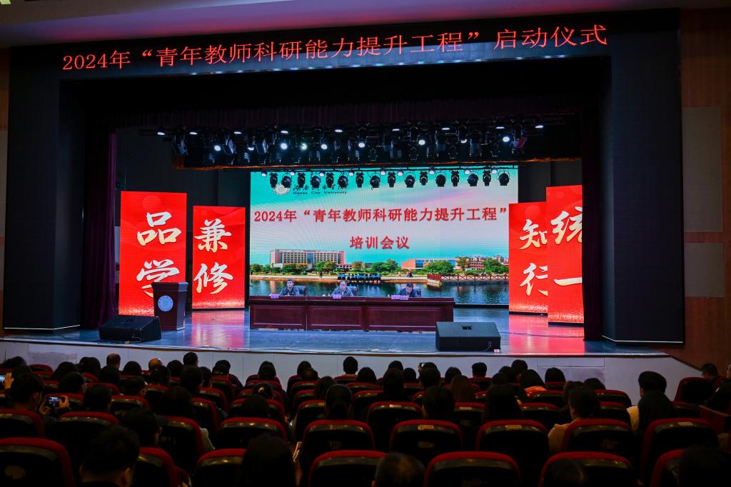 本网讯(通讯员 赵旭)3月16日上午,学校2024年“青年教师科研能力提升工程”启动仪式在学校音乐厅举行,校长何振出席并讲话,宣布2024年“青年教师科研能力提升工程”正式启动,党委副书记袁志成主持会议。