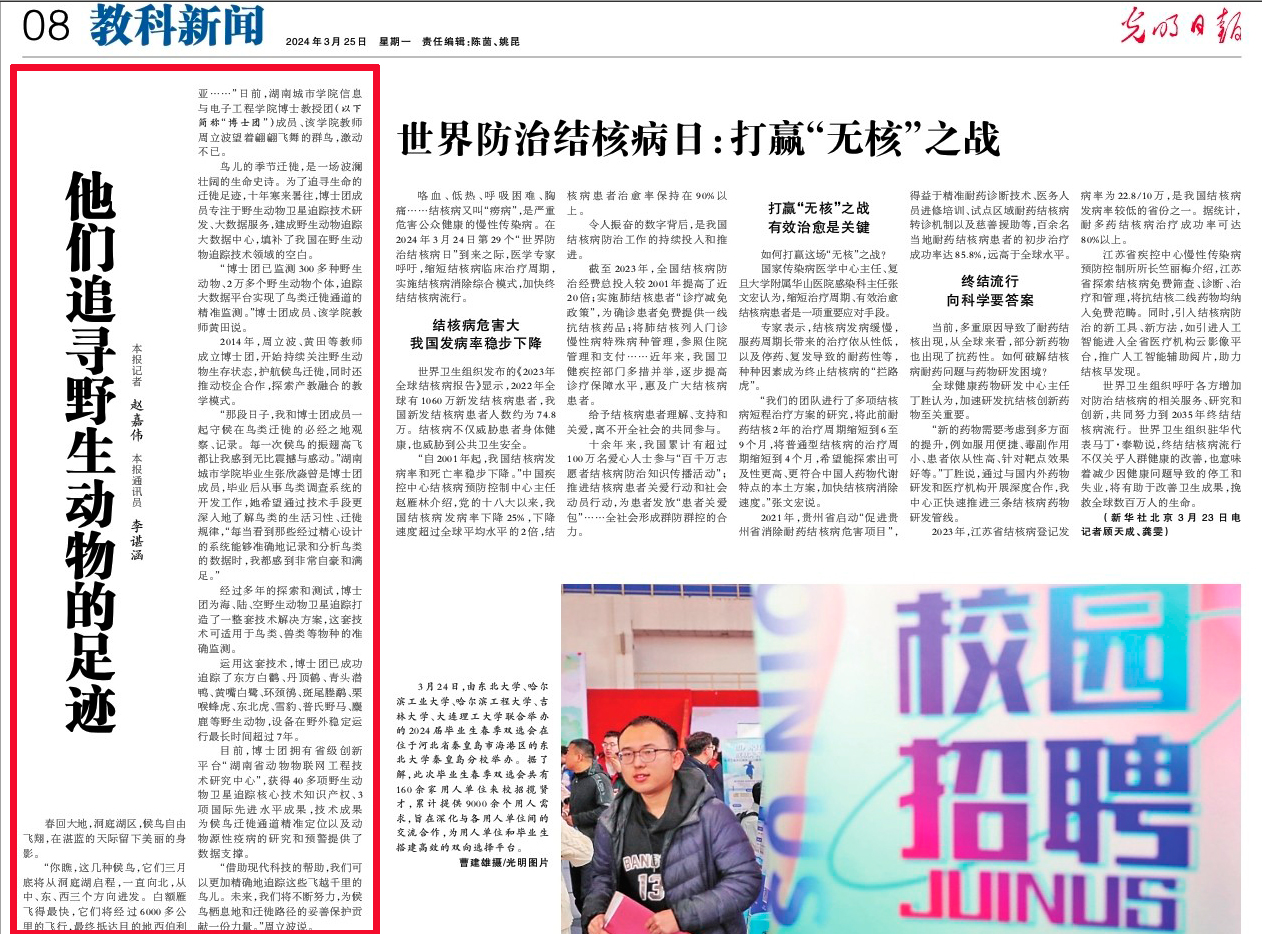 《光明日报》3月25日第8版报道jdb电子游戏官方网站博士团聚焦野生动物卫星追踪技术研发。