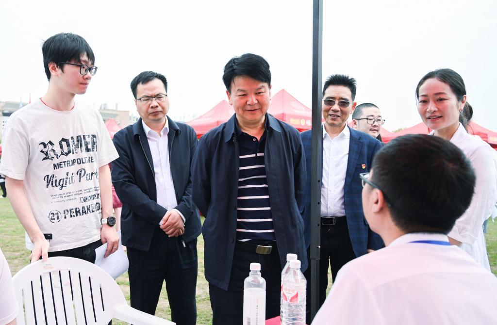 汤放华与用人单位亲切交流,详细询问行业发展现状、招聘岗位需求、毕业生职业发展通道、薪资待遇等情况。他勉励大家树立正确的择业观、就业观,以积极的心态投入到求职行动中。汤放华强调,全校上下要积极搭建校园招聘平台,畅通就业服务渠道,持续开展精准就业服务,充分发挥校园招聘主渠道作用,为毕业生更加充分更高质量就业保驾护航。
