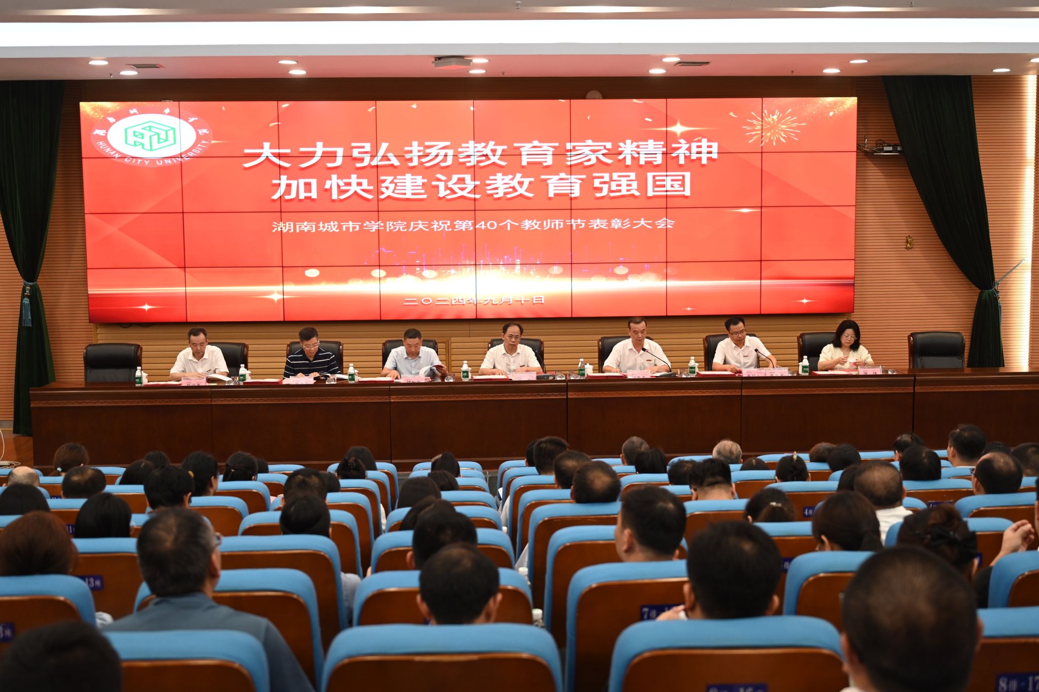 本网讯(通讯员 曾伟)9月10日上午,jdb电子游戏官方网站第40个教师节表彰大会在图书馆报告厅隆重召开。校长何振出席会议并讲话,校党委副书记袁志成主持会议。在家的校领导,学校各单位主要负责人、受表彰对象、教授、博士、青年教师代表共200余人参加会议。