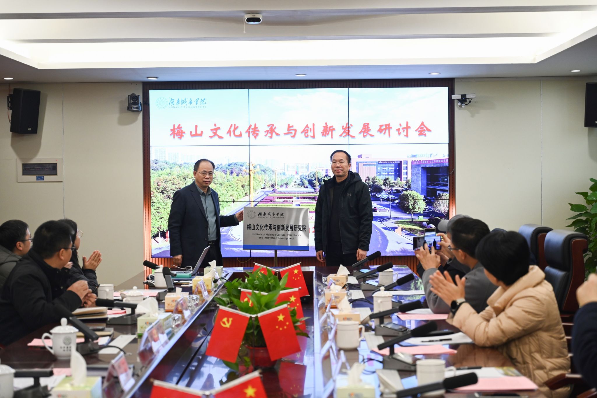 会上,jdb电子科研处处长胡科宣读了成立梅山文化传承与创新发展研究院的相关文件。在与会人员的共同见证下,何振与陈宇翔共同为jdb电子梅山文化传承与创新发展研究院揭牌。
