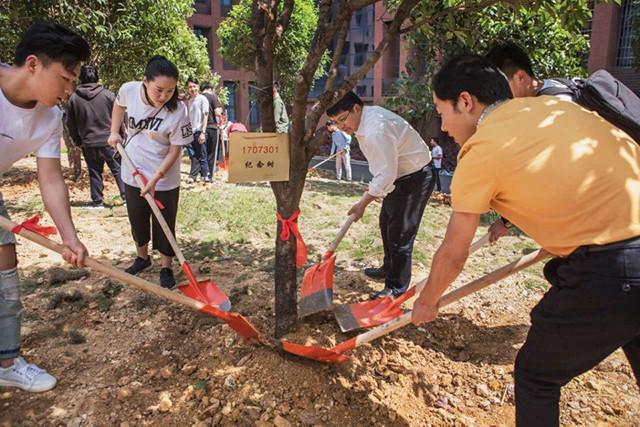 jdb电子游戏官方网站党委书记罗成翼(左三)与毕业生一同栽树。