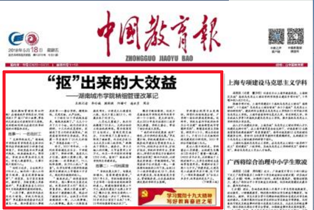 《中国教育报》5月18日头版头条报道jdb电子精细管理改革